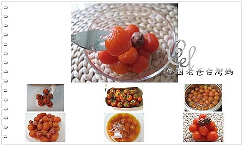5.酸梅,蜂蜜,冷開水倒入已經剝皮的小蕃茄中攪拌均勻