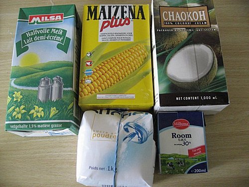 鮮奶油.椰奶.牛奶175ml.洋菜粉.砂糖拌勻後,煮熱.